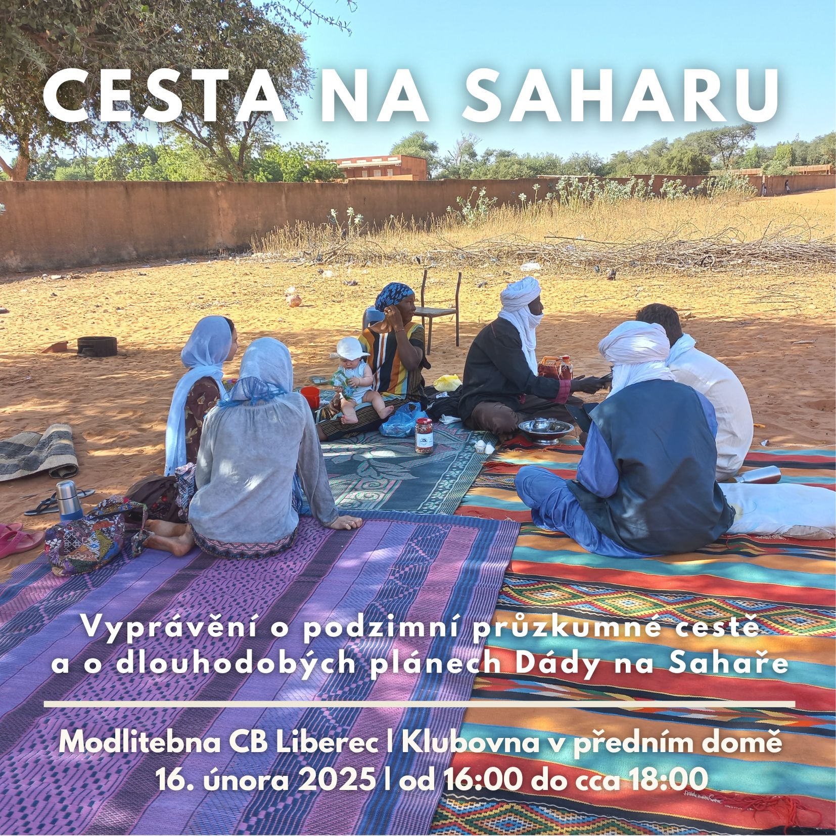 Přijďte si tuto neděli 16. února 2025 od 16:00 poslechnout, jaké to je putovat saharskou krajinou, sdílet nejen chléb s místními, vidět jejich radosti i starosti a zároveň přemýšlet o tom, jak bychom jim mohli být nablízku nejen na okamžik, ale i dlouhodobě, a jak mi přinést evangelium, aby mohli mít živou naději.